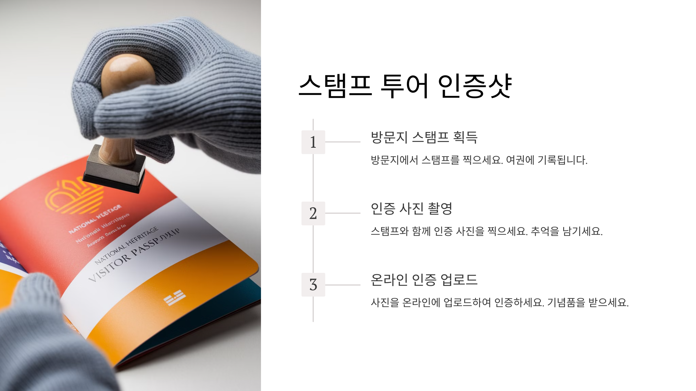 특히, 유네스코 세계유산, 국가 지정 문화재, 역사적인 명소 등을 방문하는 사람들이 더욱 흥미를 가질 만한 프로그램이에요. 단순히 관광하는 것이 아니라, 방문 기록을 남기고 특별한 혜택도 받을 수 있어요!