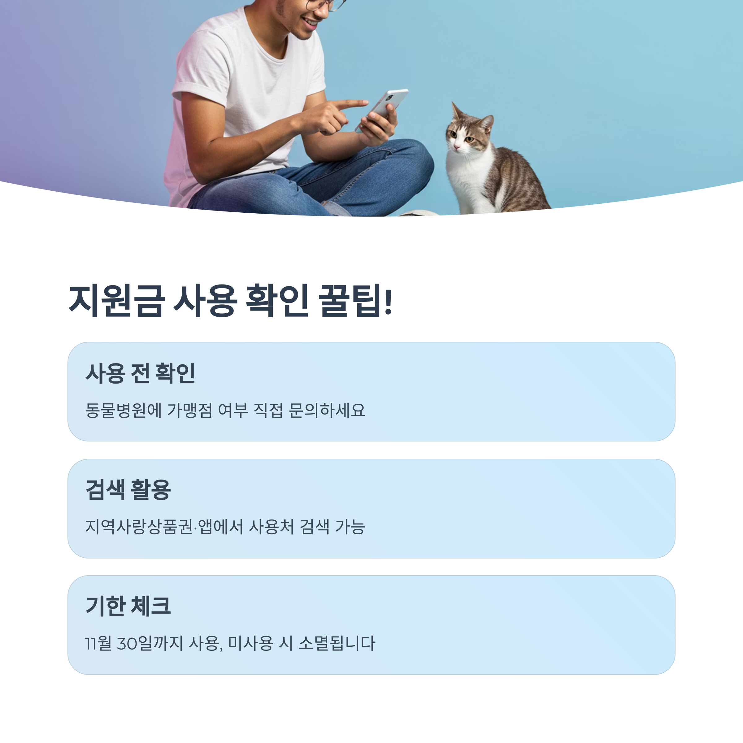 이처럼 동물병원에서도 민생지원금 사용이 가능하려면 몇 가지 기준을 충족해야 해요. 저는 사용 전에 카드사 앱에서 가맹점 여부를 먼저 확인했고, 해당 병원에 직접 전화해서 최종 확인을 했어요. 작은 준비만으로도 헛걸음 없이 알차게 쓸 수 있답니다. 😄