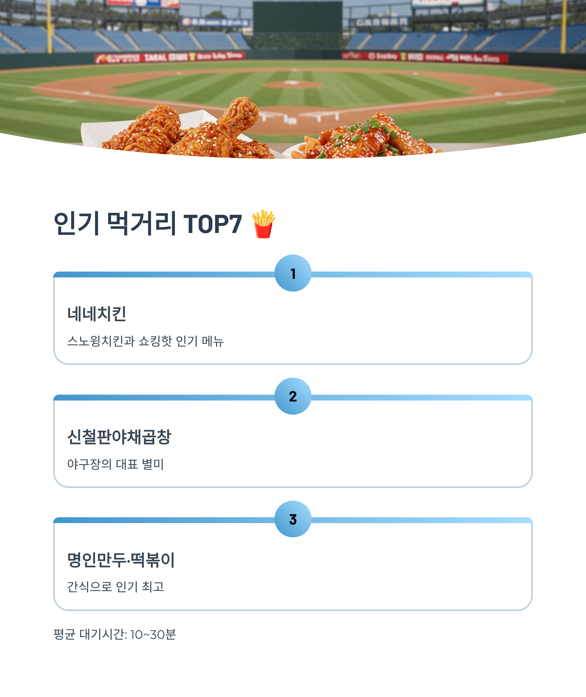 | 1위 | 치킨&생맥주 | 야구장 필수 조합 | 모든 좌석 |
