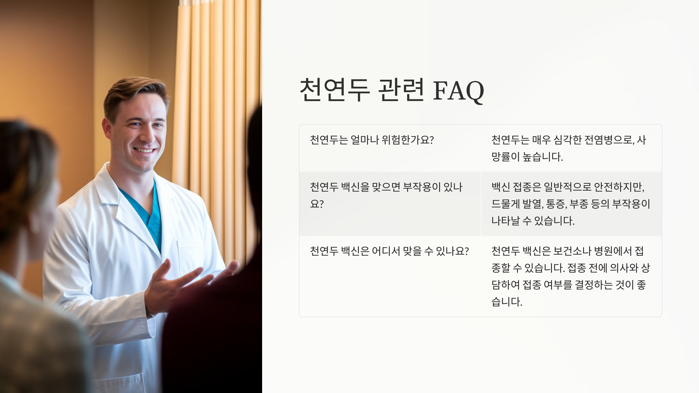 📌 천연두는 역사 속으로 사라졌지만, 그 교훈을 잊지 않고 감염병 예방을 위한 대비가 중요해요!