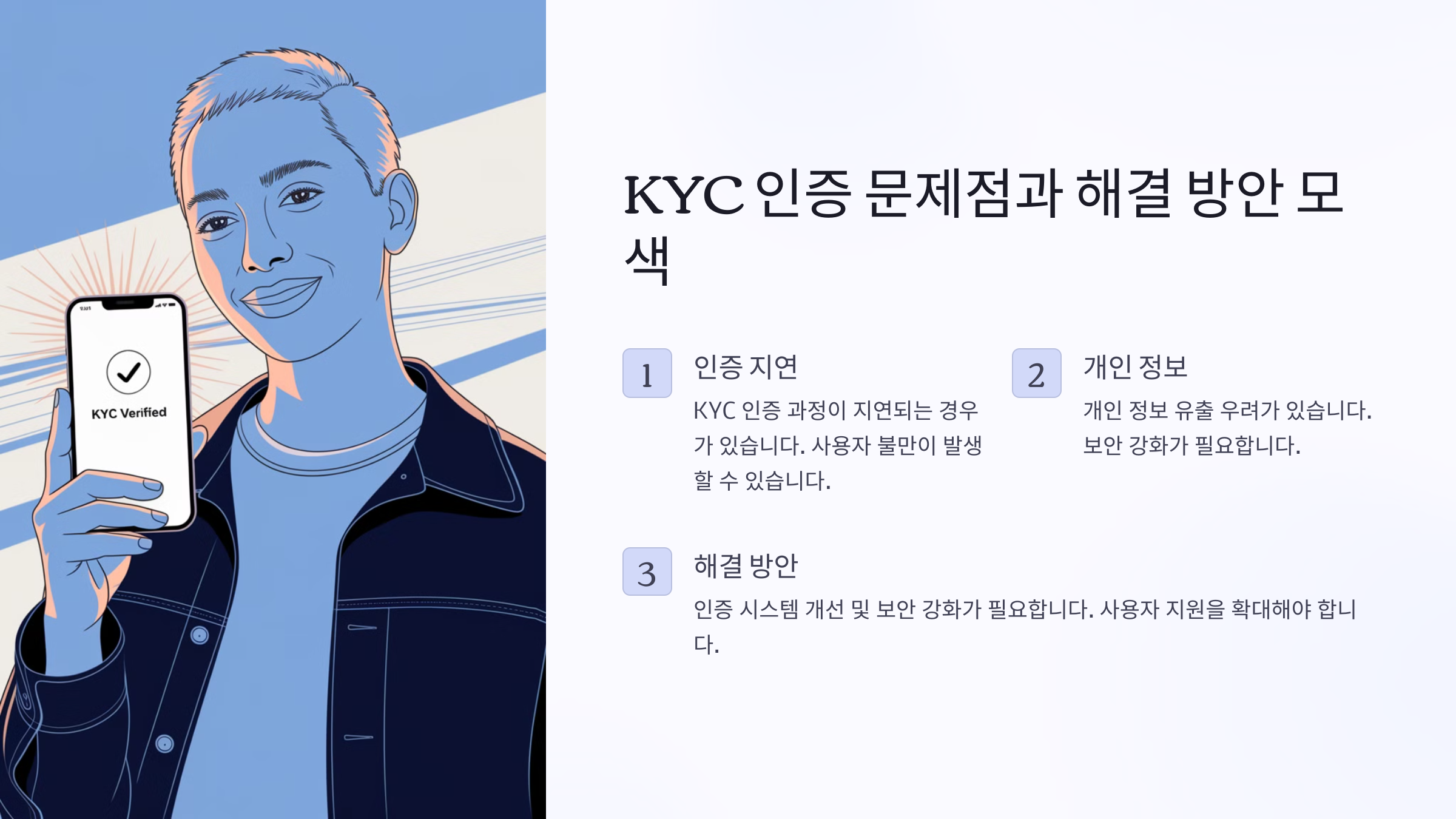 | KYC 인증 속도 | 인증 대기 시간이 길어 사용자 불만 증가 |