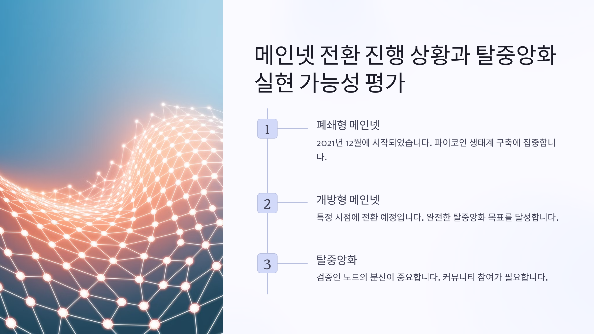 현재까지 **오픈 메인넷 일정이 공식적으로 발표되지 않은 점**은 파이코인의 가장 큰 불확실성 요소예요. 이 부분이 해결되지 않으면 파이코인의 가치는 정체될 가능성이 커요.