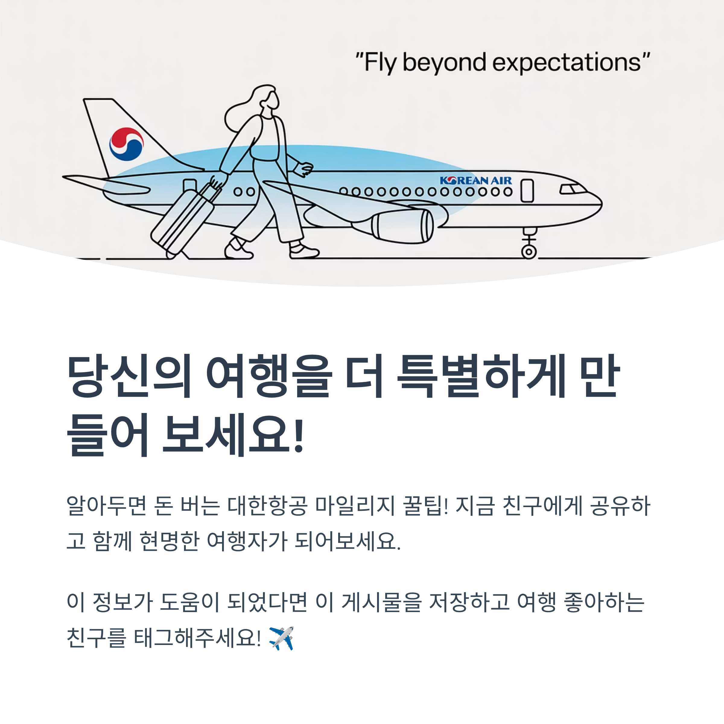 ※ 본 글은 2025년 기준 대한항공 마일리지 제도를 바탕으로 작성되었으며, 항공사 정책 변경에 따라 내용이 달라질 수 있어요. 발권 및 적립 전 반드시 대한항공 공식 홈페이지를 확인하세요.