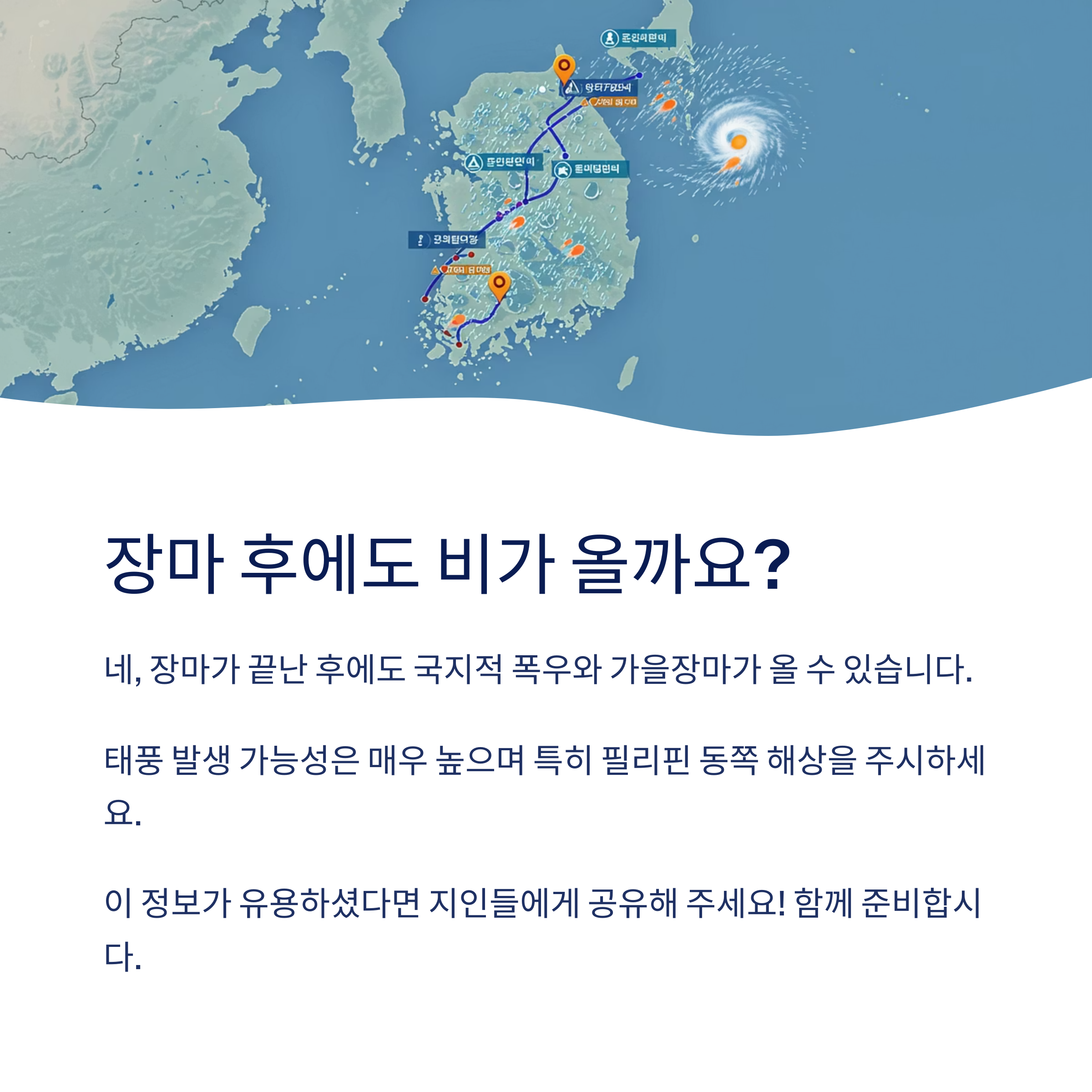 올여름은 단순히 무덥기만 한 게 아니라, 빠른 장마 종료와 예상치 못한 태풍, 긴 폭염 등으로 종합적인 대비가 필요한 시기예요. 작은 준비들이 큰 피해를 막아줄 수 있다는 걸 잊지 마세요!